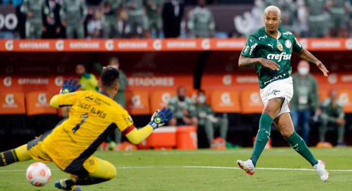 Tudo caminhava para mais 30 minutos de muito equilíbrio no jogo, mas Andreas Pereira tratou de desequilibrar, só que para o lado adversário. Sozinho no lance, o meia perdeu controle da bola e tentou recuar para Diego Alves, mas a bola ficou curta e Deyverson antecipou. Frente a frente com o goleiro, o centroavante não desperdiçou e marcou o gol que deu o tricampeonato para o Palmeiras.