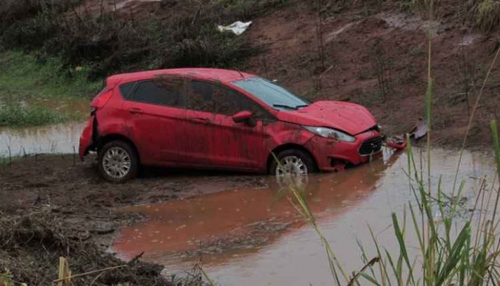 Durante forte chuva na manhã desta quarta-feira (22) uma motorista perdeu o controle de um New Fiesta e acabou caindo com o carro em barranco na rodovia BR-163, em Nova Alvorada, a 120, em a quilômetros de Campo Grande. A frente do carro ficou bastante danificada, mas a condutora, uma enfermeira, não sofreu ferimentos graves.