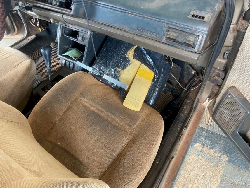 No automóvel foram localizados 208 kg de substância análoga à maconha e 7,0 kg análoga à haxixe marroquino.