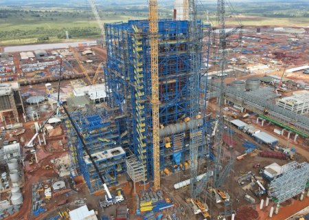 Com o içamento da peça chamada de ‘balão de vapor” da caldeira, a mais pesada de toda a montagem da fábrica, pesando 312 toneladas, a empresa se prepara para iniciar um novo ciclo da construção da unidade.