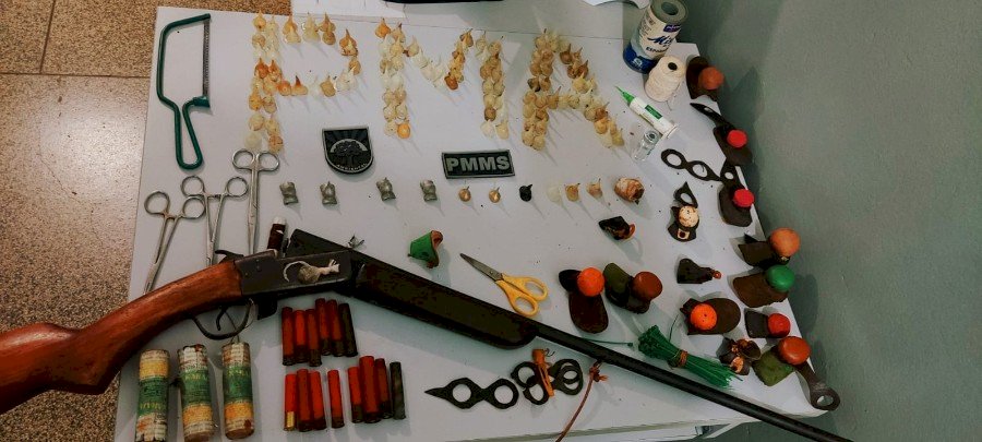 Um dos presentes se identificou como proprietário da chácara e organizador do evento. Com sua autorização, os policiais realizaram buscas no imóvel e encontraram uma espingarda cartucheira calibre 36, modelo 651 Remington CBC, além de 18 cartuchos intactos, espoletas, pólvora e cartuchos deflagrados — todo o material de posse do organizador.