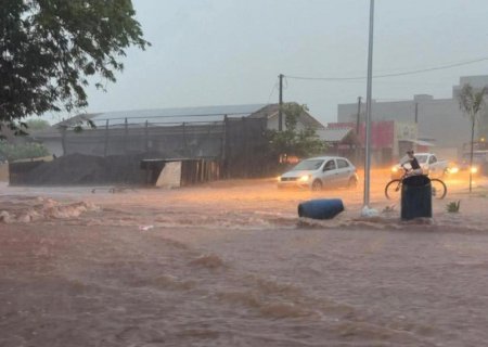Chuva forte alaga ruas, destelhou casas e derrubou árvores em cidade no MS