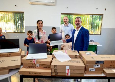 O prefeito de Ivinhema, Juliano Ferro, juntamente com o secretário municipal de Educação, Adriano Tibúrcio, realizou a entrega de 60 notebooks para a Rede Municipal de Ensino. As unidades contempladas foram a Escola Municipal Professor Sideney Carlos Costa e a Escola Municipal Professor André Geraldo dos Santos.