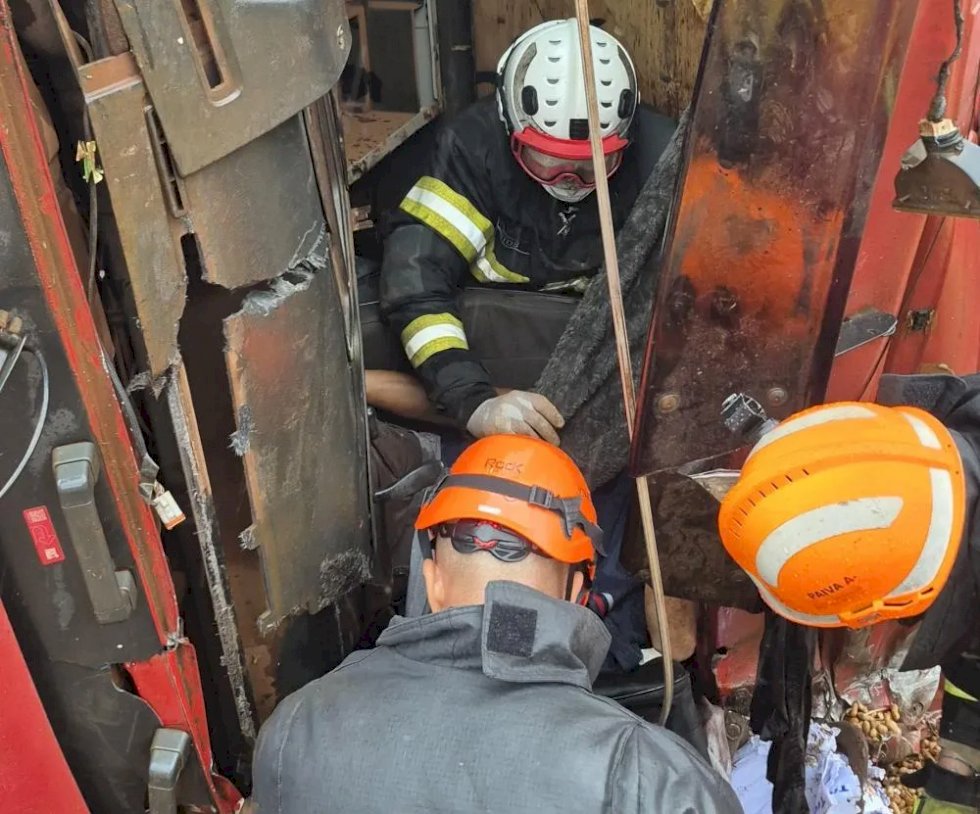 Os trabalhos duraram cerca de duas horas, sendo necessário o uso de equipamentos de salvamento para realizar o corte e afastamento do painel da cabine, permitindo assim a retirada do motorista.