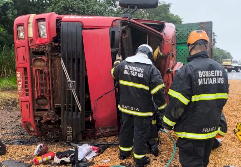 Equipes do Corpo de Bombeiros Militar de Mato Grosso do Sul realizaram o isolamento da área e a estabilização do caminhão, iniciando os procedimentos de resgate veicular. Durante todo o atendimento, a vítima permaneceu consciente e orientada.