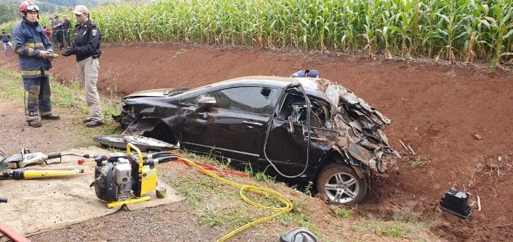 A PRE informou que o veículo, que transportava cinco pessoas, saiu da pista e bateu em um barranco, próximo ao trevo de acesso a cidade de Verê.