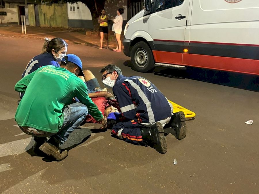 Um homem foi socorrido pelo Serviço de Atendimento Móvel de Urgência (Samu) na noite desta quarta-feira (15) após cair com a motocicleta na Avenida Alcides Menezes de Farias, em Nova Andradina.