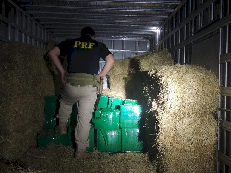 Os policiais fiscalizavam na BR-267, quando abordaram um caminhão. Durante a fiscalização, o motorista disse que transportava fardos de feno, mas durante a fiscalização, os policiais encontraram grande quantidade de maconha escondida na carga de feno.