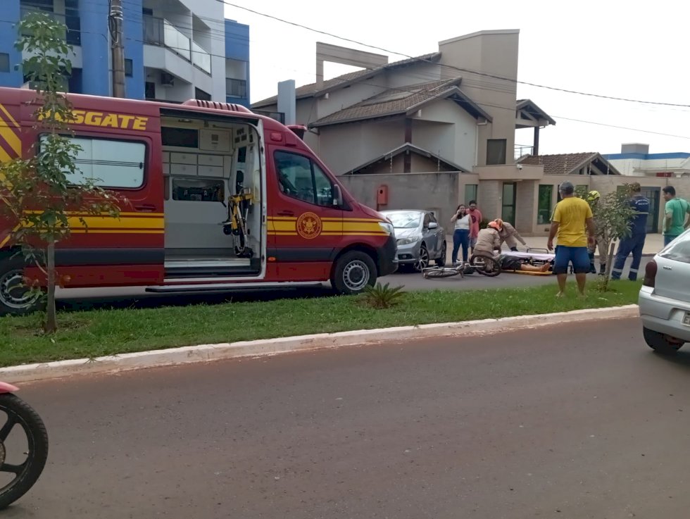 Na manhã desta quinta-feira (16), um acidente envolvendo um carro e uma bicicleta foi registrado em frente a um hotel, na Avenida Reinaldo Massi, em Ivinhema.